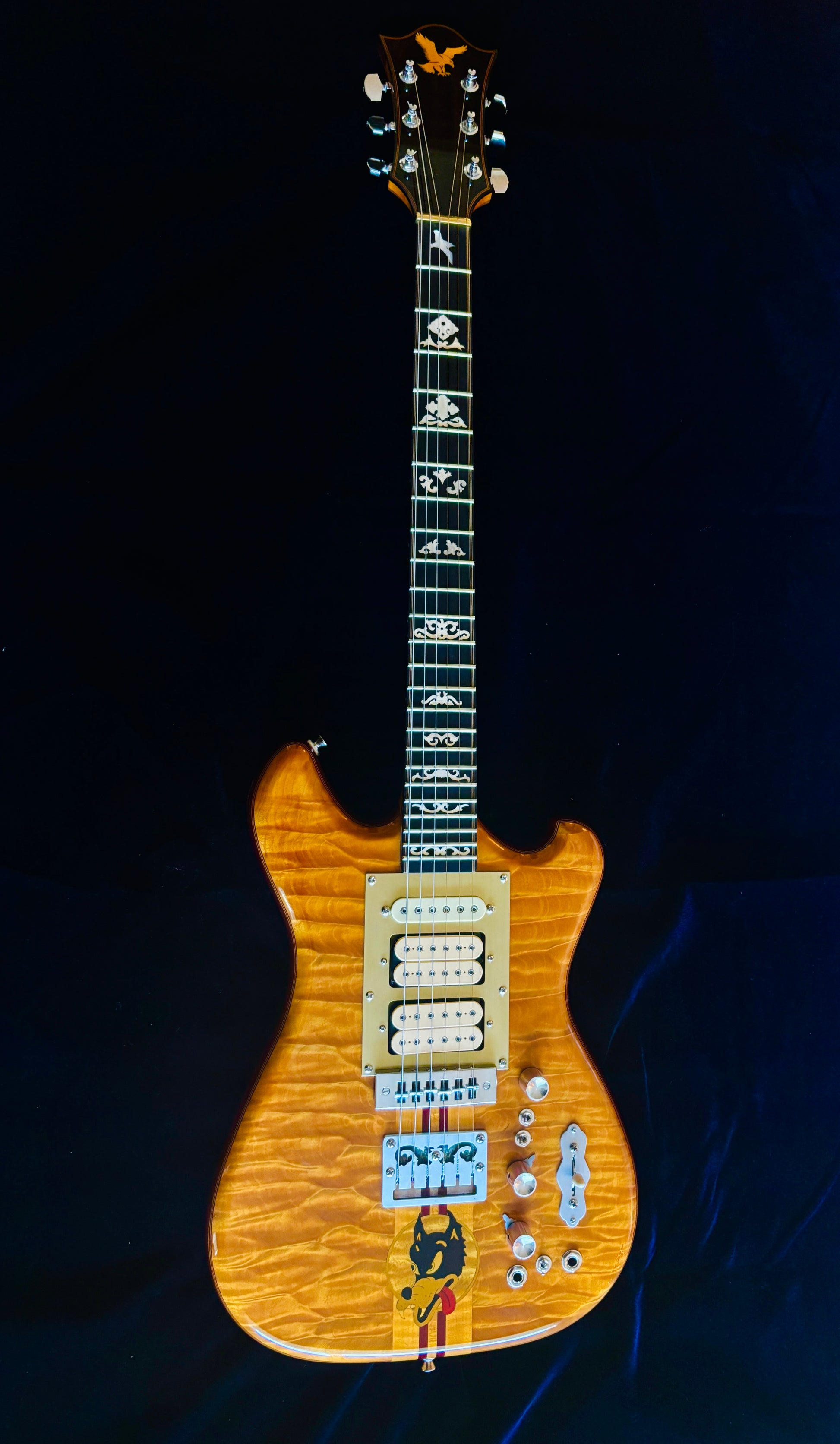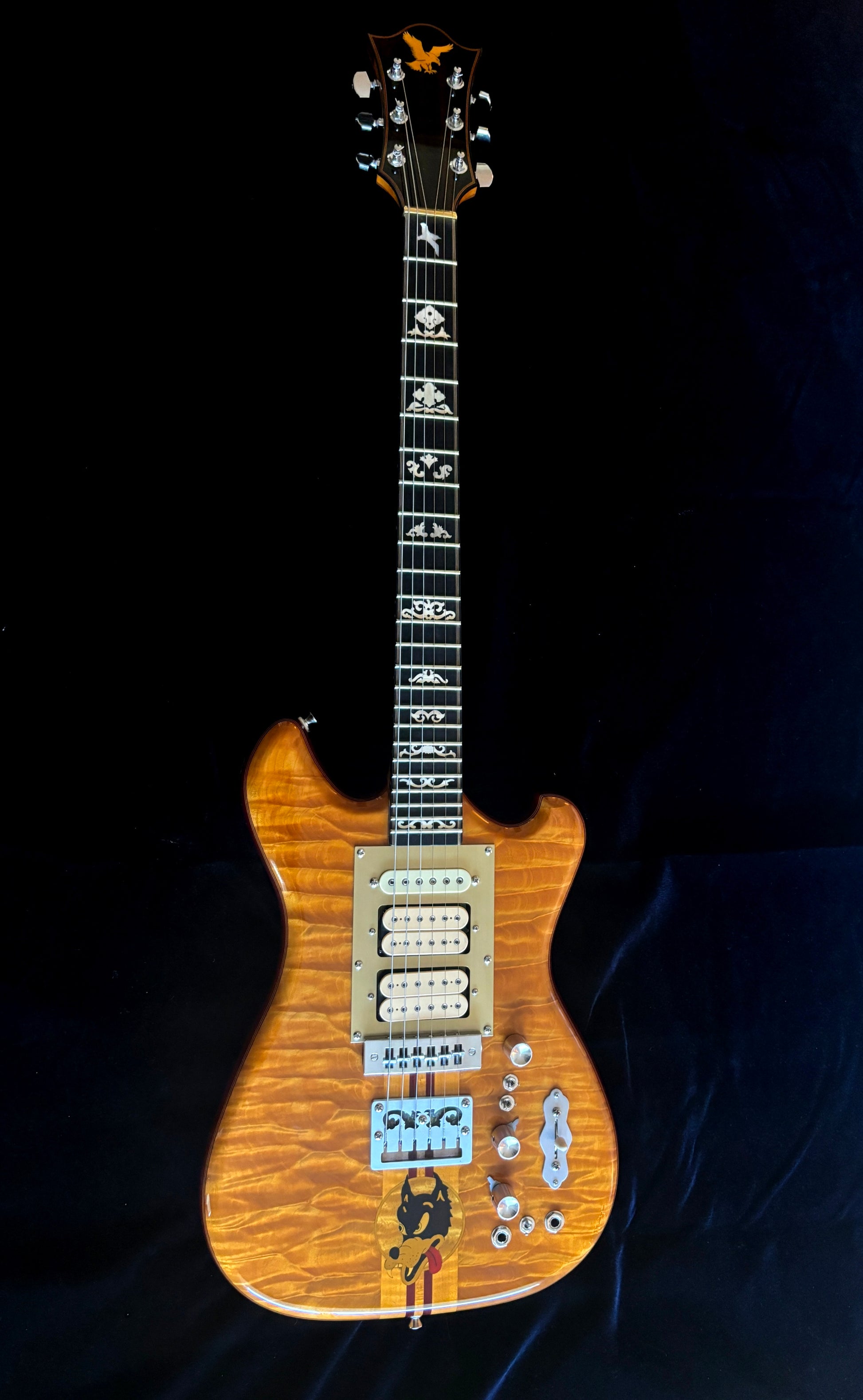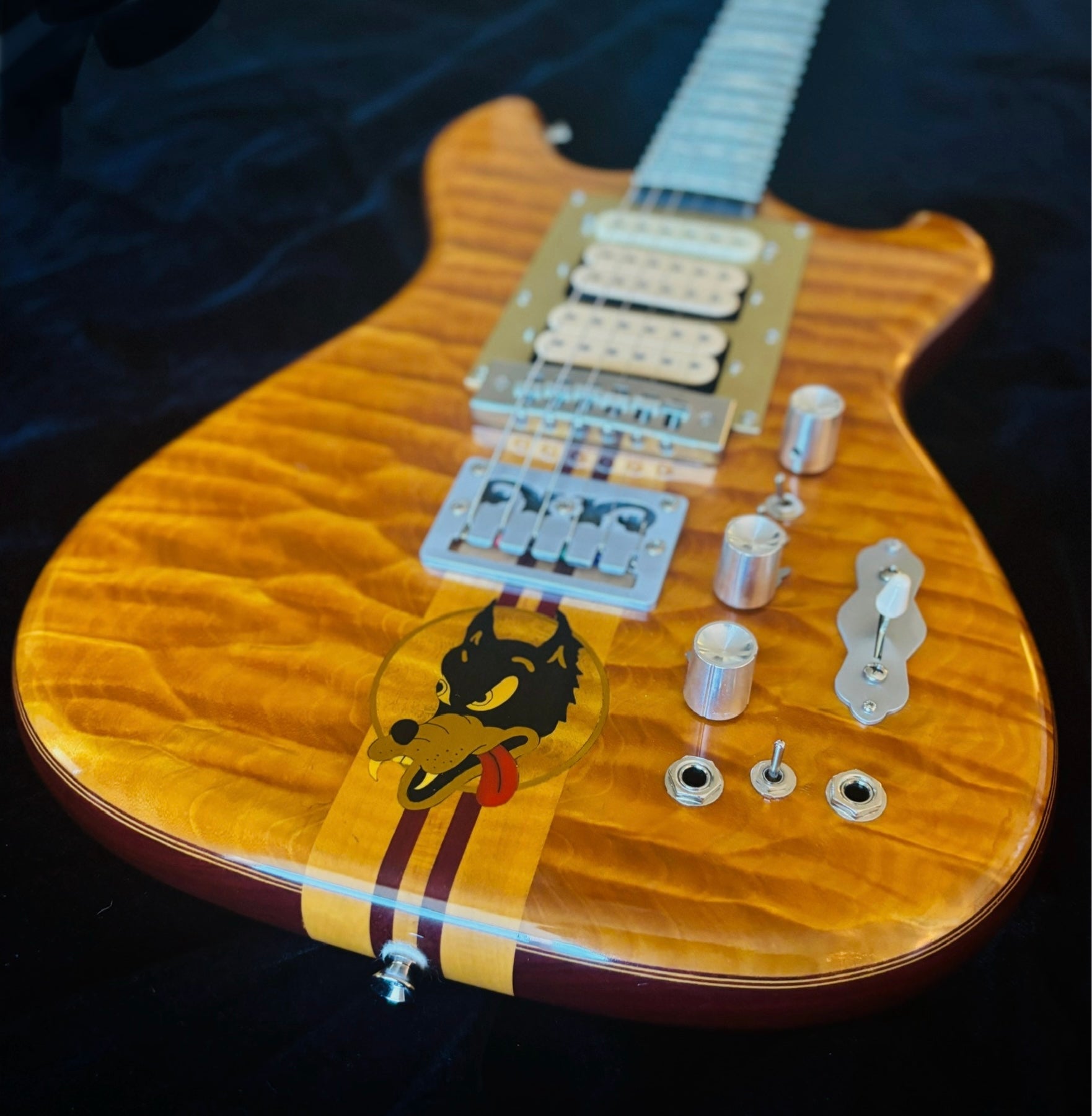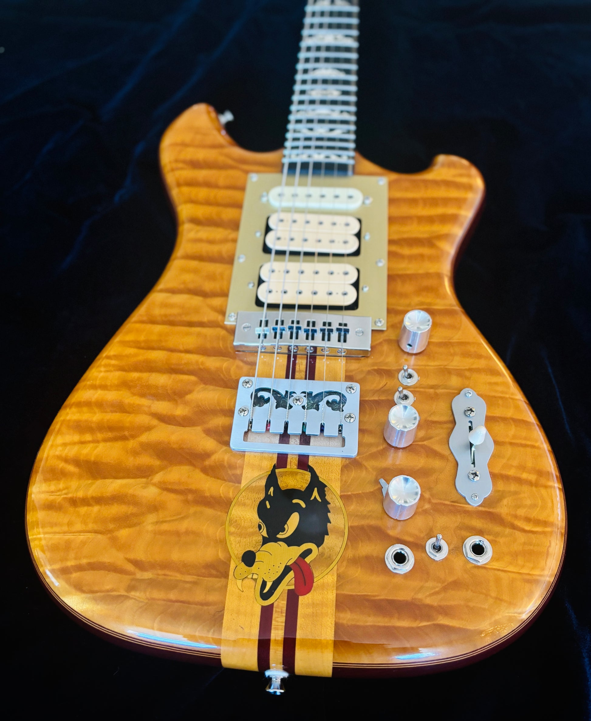 A faithful recreation of Jerry Garcia's famed "Wolf" guitar by Luthier Greg DeLuis. Completely hand crafted with modern fit and finish standards in mind. When Tiger & Wolf were showcased at the MET in 2019 I was able to take very detailed and up close photographs of these guitars on which I based by templates and informed my building process. My aim is to create the MOST faithful example, both visually and sonically, using the time tested and handcrafted methods that were utilized when creating the original pieces.
