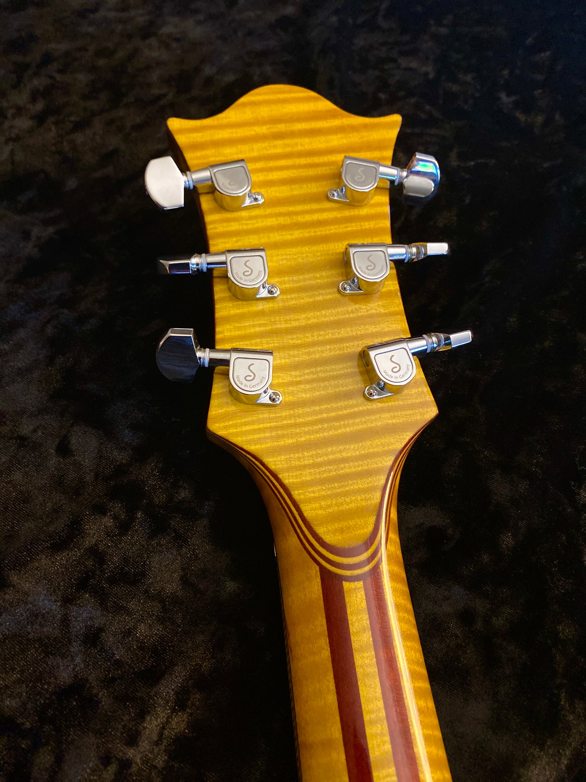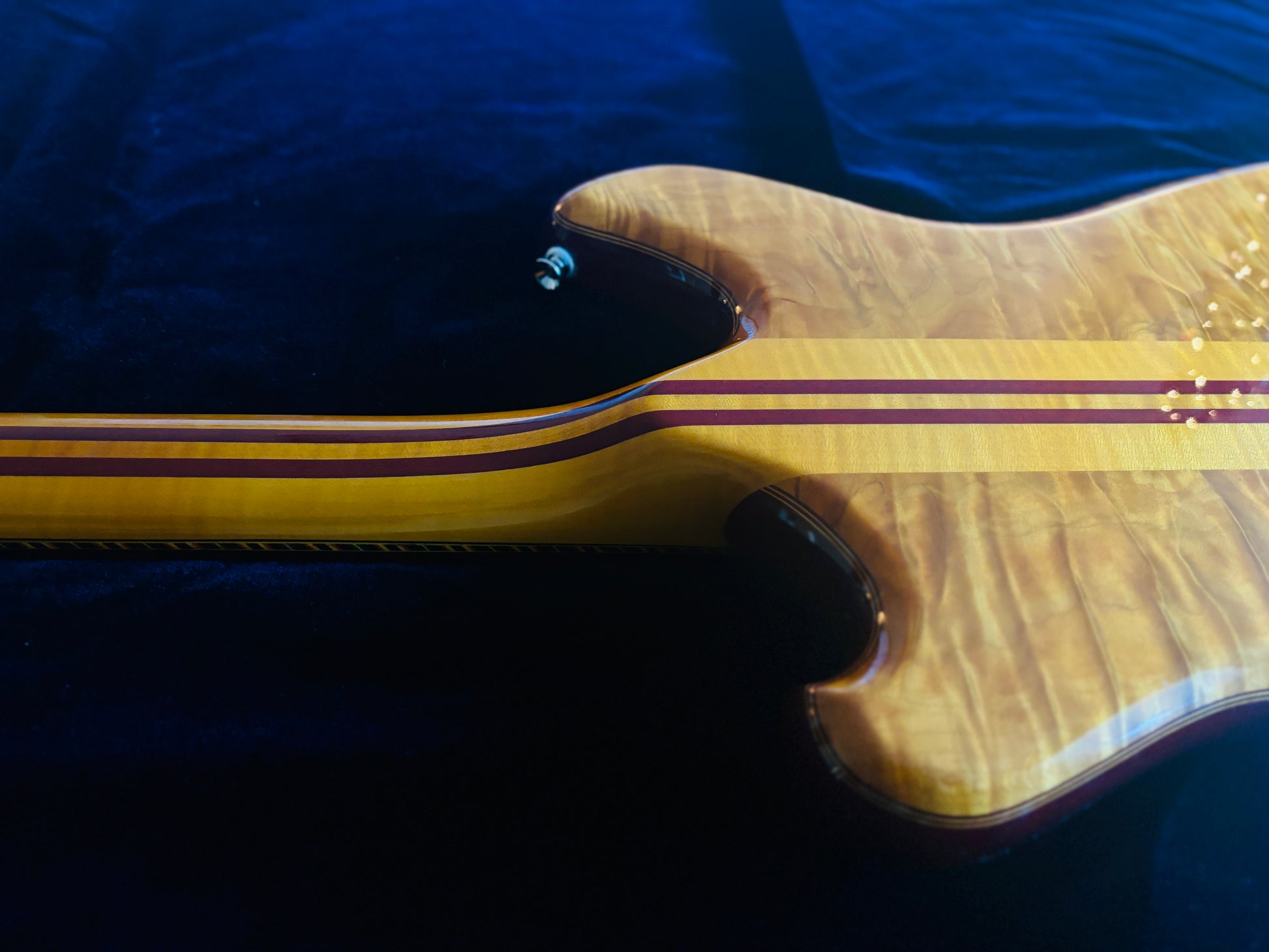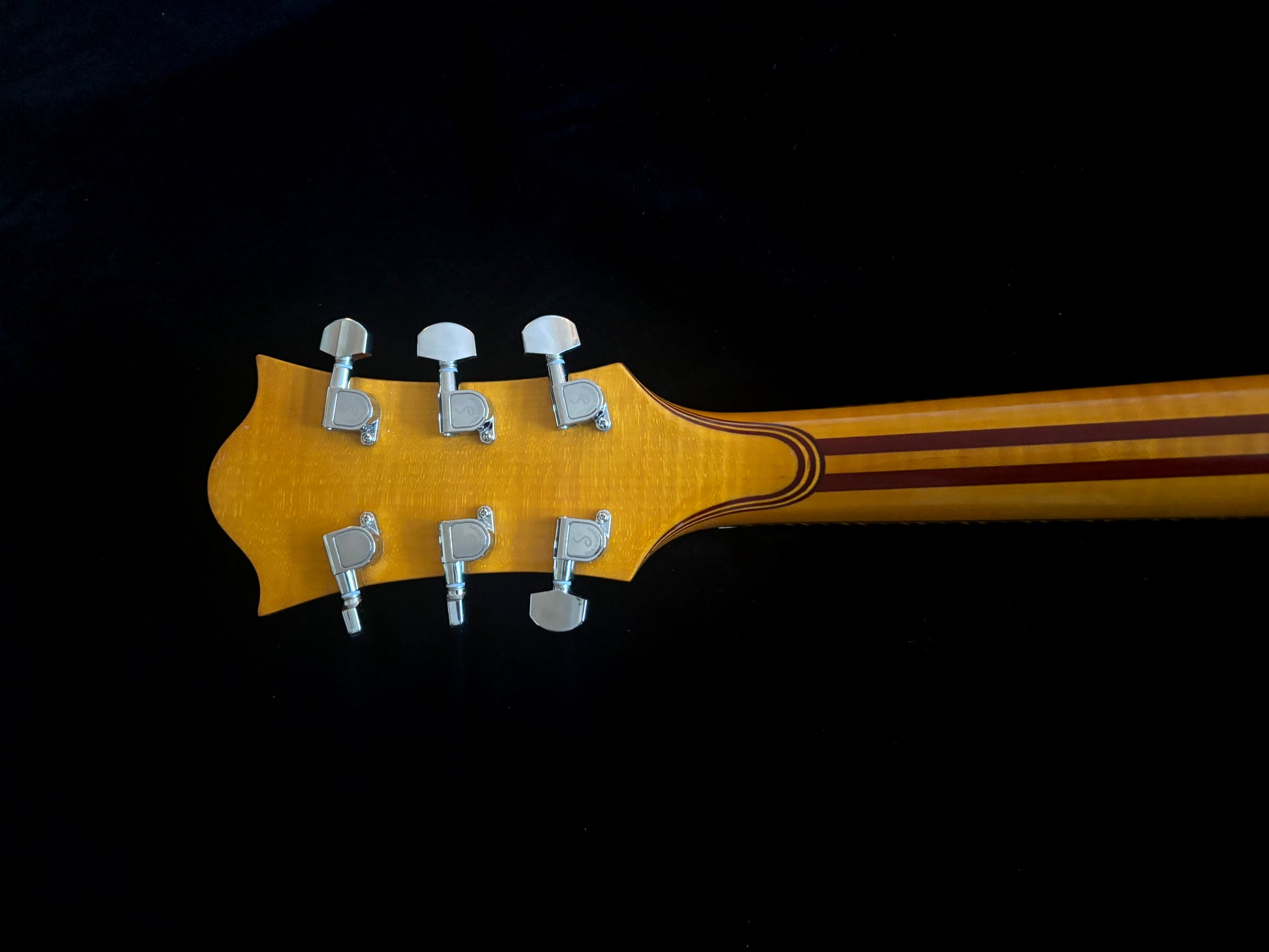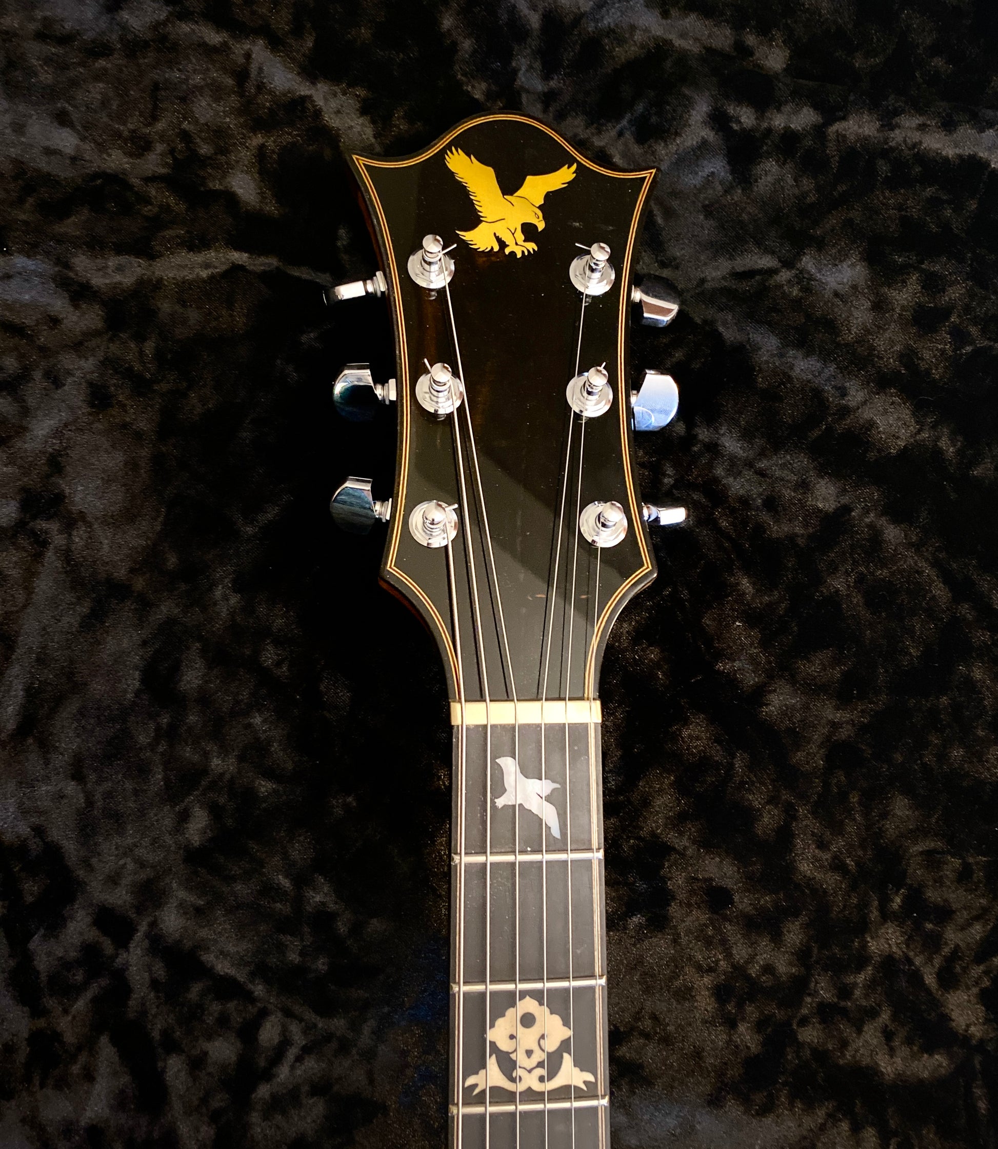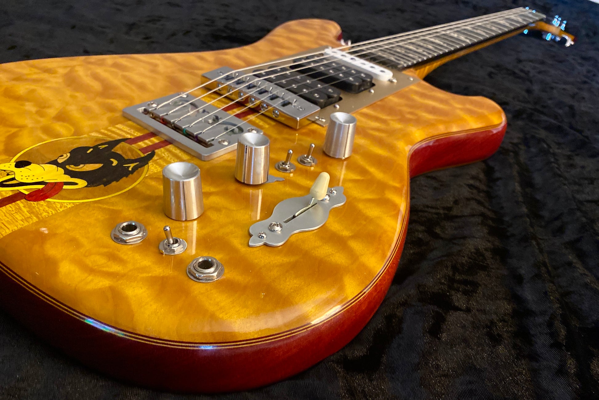 A faithful recreation of Jerry Garcia's famed "Wolf" guitar by Luthier Greg DeLuis. Completely hand crafted with modern fit and finish standards in mind. When Tiger & Wolf were showcased at the MET in 2019 I was able to take very detailed and up close photographs of these guitars on which I based by templates and informed my building process. My aim is to create the MOST faithful example, both visually and sonically, using the time tested and handcrafted methods that were utilized when creating the original pieces.